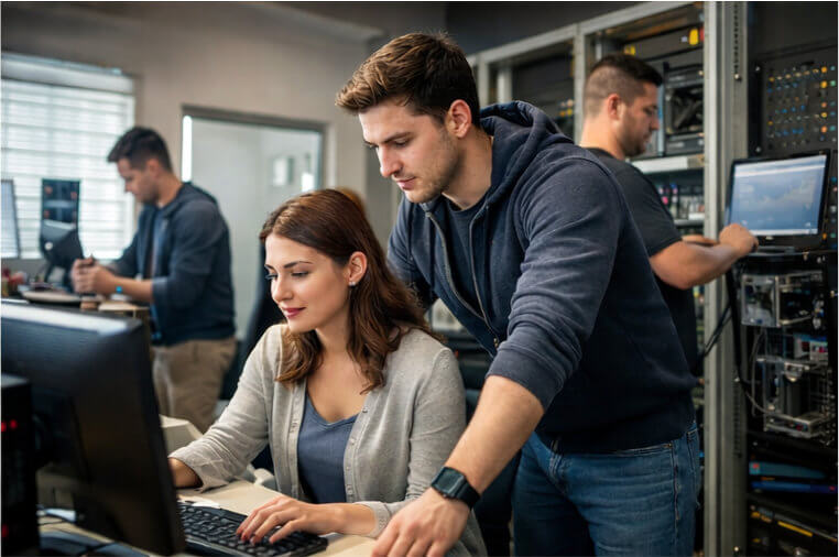 Řešíme typické problémy na koncových zařízeních a v kancelářském prostředí (nastavení, Wi-Fi, aktualizace, tisk, atd.). Pokud narazíme na infrastrukturu mimo dohodnutý rozsah, navrhneme další krok.
